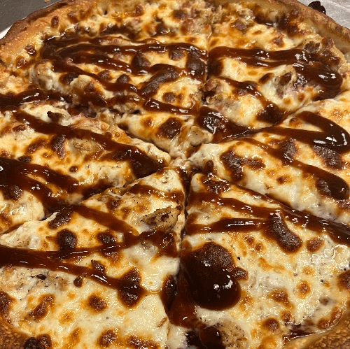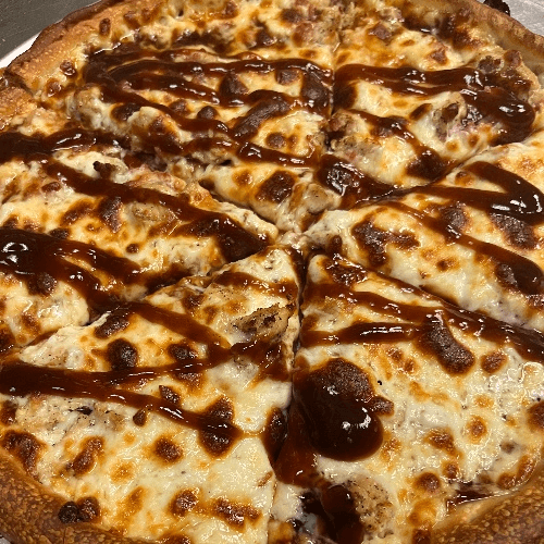 Chicken and bacon with BBQ sauce base and extra mozzarella cheese
