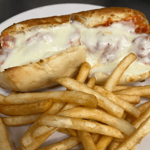 Meatballs with marinara or meat sauce baked with mozzarella cheese